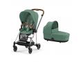 Poussette duo MIOS 3 châssis Chrome Brown + Nacelle Luxe - Leaf Green