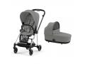 Poussette duo MIOS 3 châssis Chrome Black + Nacelle Luxe - Mirage Grey